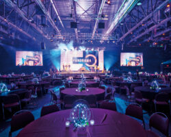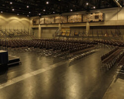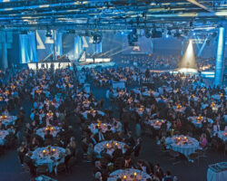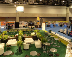The Exhibit Hall opens onto the main hall, the loggia, and the foyer—three large premeeting spaces perfect for event registration and visitor reception. Highly versatile, Hall 400 ABC is ideal for trade shows, galas, banquets, shows, conferences, or spectacular receptions. It can be partitioned into three separate sections and configured to meet your event needs, including side-by-side exposition and conference zones.