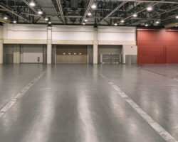 The hall has large doors that open directly onto Rue Jean-Jacques-Bertrand and can accommodate large vehicles likes buses, trucks, and helicopters as well as oversized exhibits—house sections for a home show, for example. The hall is also directly connected to a seven-bay indoor loading area that can be occupied by seven 53′ semi-trailers at the same time.