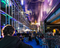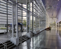 Accessible via the Convention Centre’s main entrance at 1000 boulevard René-Lévesque Est, the Main Hall is spacious and very luminous thanks to its vast windows and a spectacular view of the Laurentian Mountains. It features a cloakroom and permanent registration desk for seamless participant arrivals and check‑ins. The Main Hall also overlooks Exhibit Hall 400 ABC and opens onto a loggia and Foyer 4, allowing guests to admire the amazing work of art, Monument pour A, by Rose-Marie Goulet.