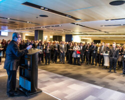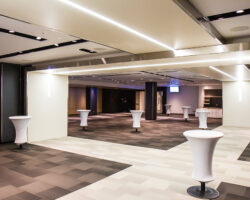 Hall 300 is a multipurpose reception area on Level 3 that links to meeting rooms, a snack bar, a solarium, and a lounge with armchairs and TVs. This glassed-in area is equipped with a cloakroom, and can be used for cocktails, receptions, press conferences, or as a registration area. Access is via the public passageway.